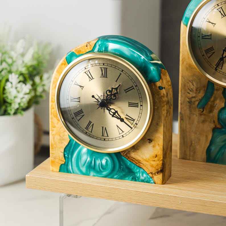 Wholesale Wooden and Epoxy Resin Desk Clock Artisan Desk Clock Wood and Epoxy Clock Home Handmade Gift