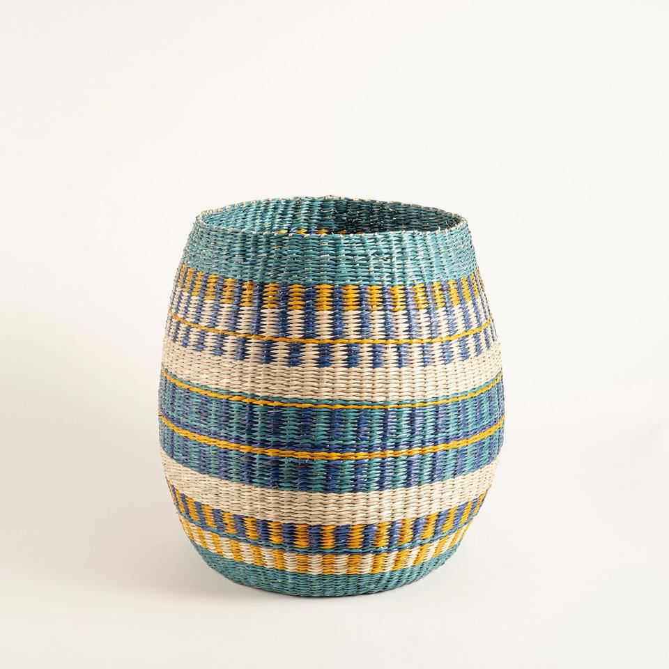Wholesale Woven Round Seagrass Storage Basket Blue Natural Stripe Design Handmade Organizer For Home Decor Low Cost Bulk Order