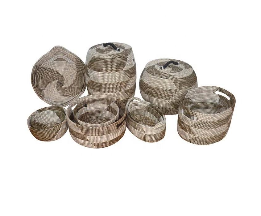 Wholesale Woven Seagrass Laundry Baskets Natural Wicker Material for Clothing Storage for Kitchen Use Made in Vietnam