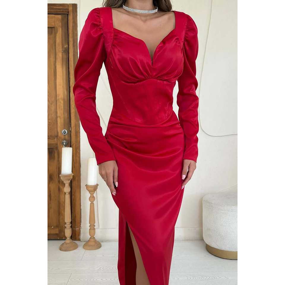 Wholesale XS Red Ball Gown Evening Dress with Cups Slit and Luxury Party Style Floor-Length A-Line Design