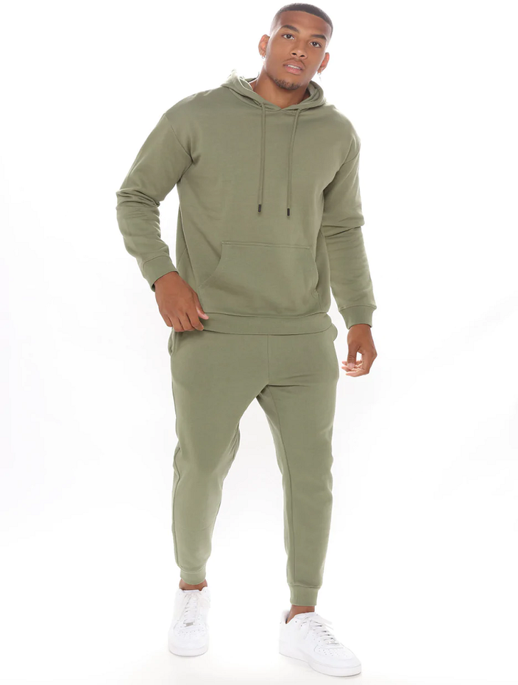 Wholesale XXL Men's Breathable Active Wear Jogging Sets Olive Colour Fleece Pullover Custom Logo Printing Loose Fitted Plus Size
