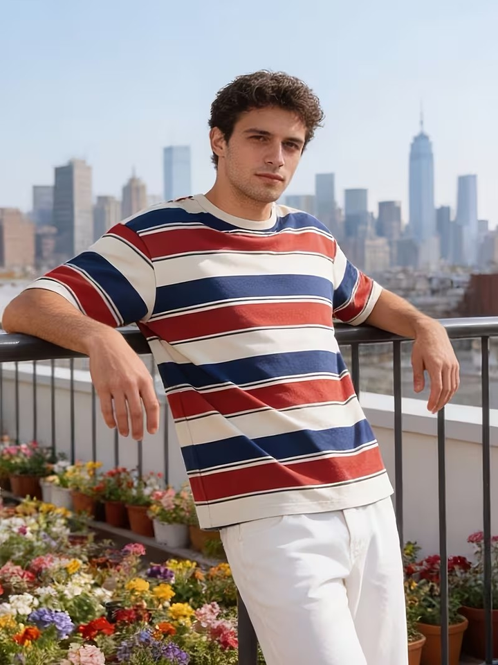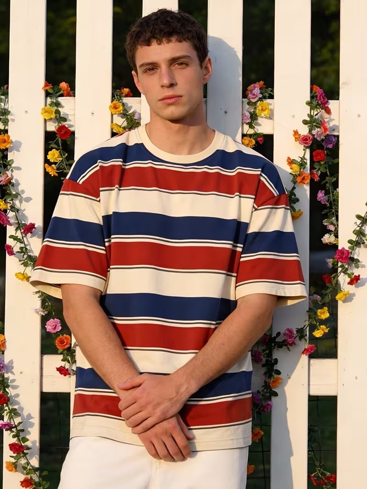 Wholesale Yarn dyed Striped Men T-shirt Chest Custom Color 100% Cotton Loose Drop Shoulder Oversized T Shirt tshirt Bangladesh