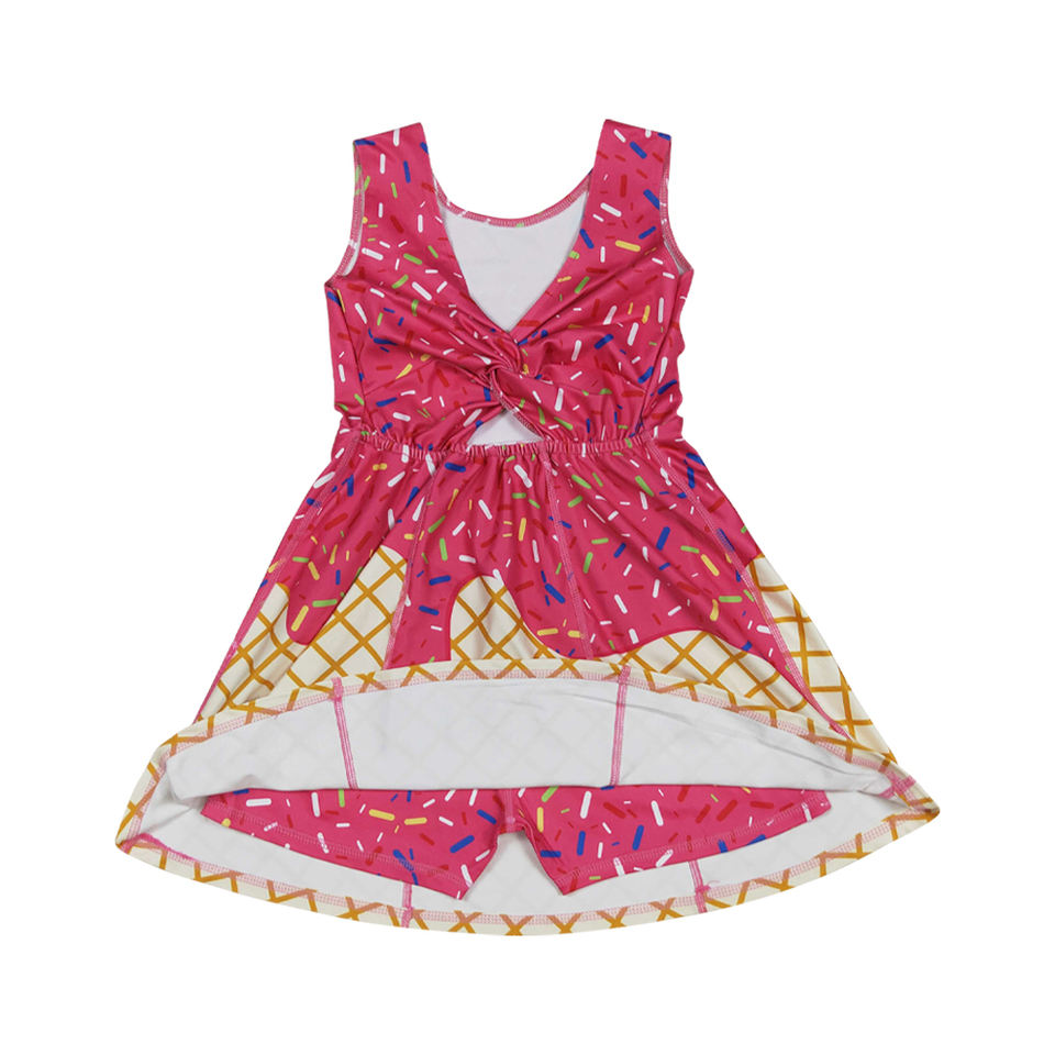 Wholesale Yoga Summer Ice Hot Pink Sleeveless Fashion Tips Pink Girls Dress Day Outfit for Toddler Baby Girls Boutique Clothes