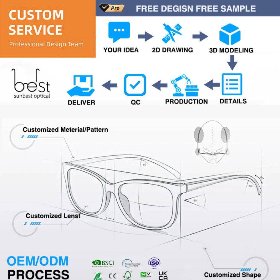 Temple inside, Temple outside, Lens, Packaging, Glasses Case