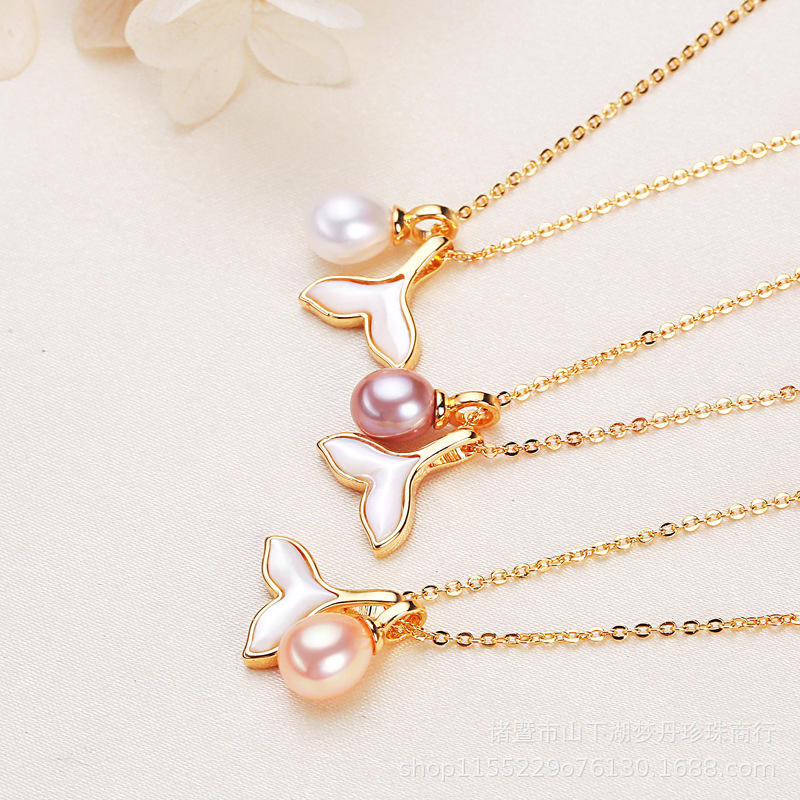 Wholesale Zhuji Female Fish Tail Butterfly Gold Necklace with Collarbone Chain Freshwater Pearl Jewelry Origin Source
