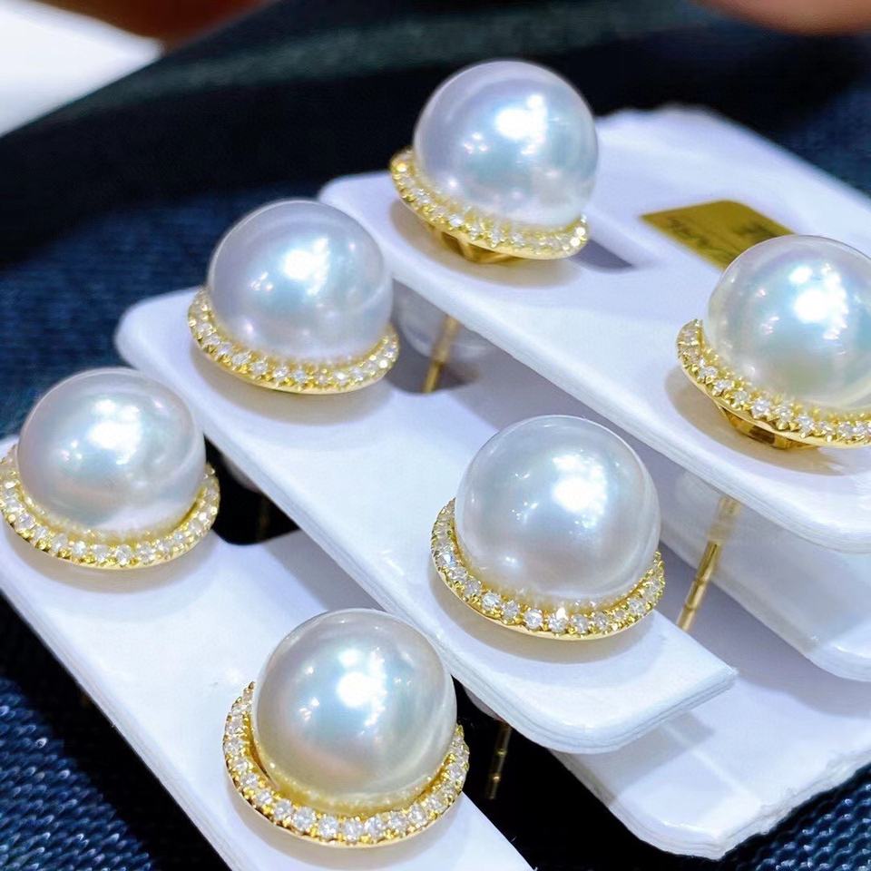 Wholesale Zhuji Natural Freshwater Zhenduo Ma Pearl G18k Gold Earrings 6-7mm8-9mm Natural Black Double Wear 6-7mm8-9mm Natural