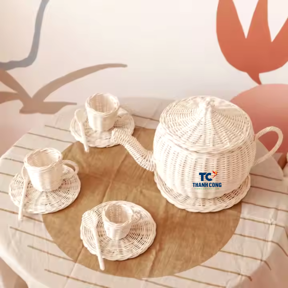 Wholesale a Mini-sized Teacup and Pot Design Natural Handmade Rattan Tea Set for Kids Featuring Made in Vietnam