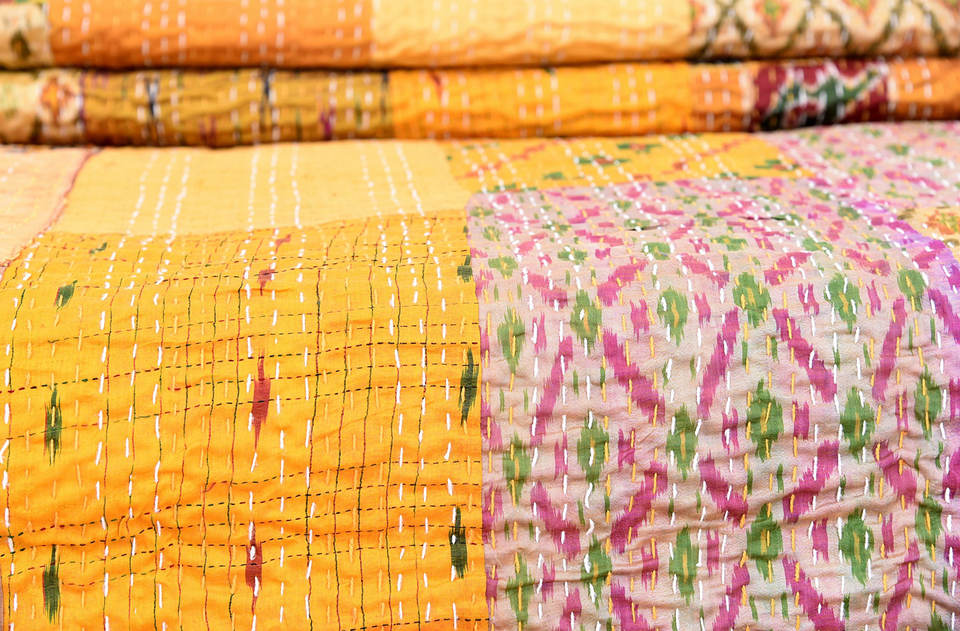 Wholesale and Manufacturing of Silk Indian Handmade Kantha Quilt Reversible Blanket Patchwork Bedspread