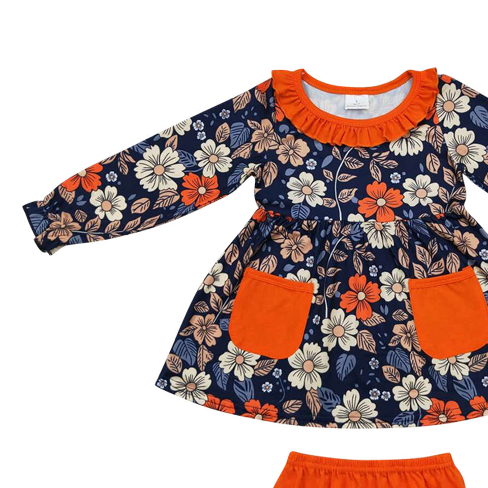 Wholesale baby girl adorable Boutique Orange flowers top kids toddler winter design child clothing set