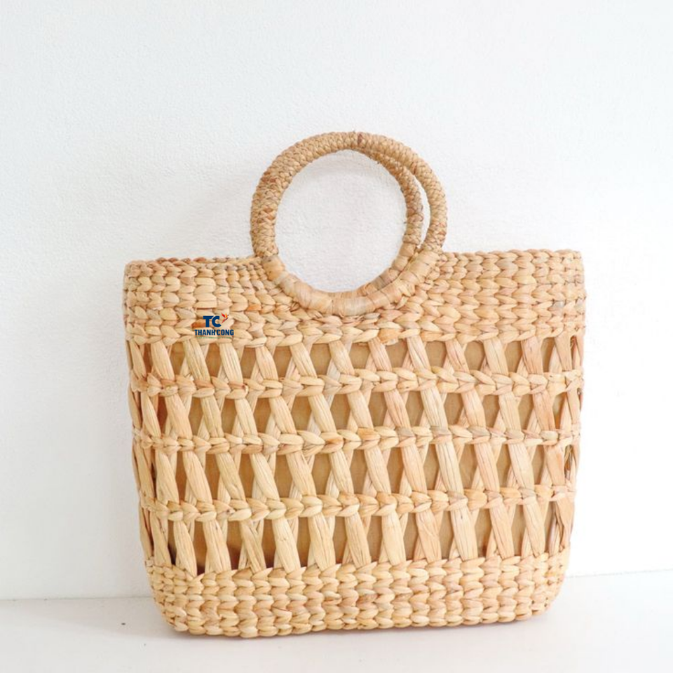 Wholesale Beach Bag Custom Round Tote Personalized Summer Water Hyacinth Bag for Women Rattan Bamboo Seagrass Summer Bag