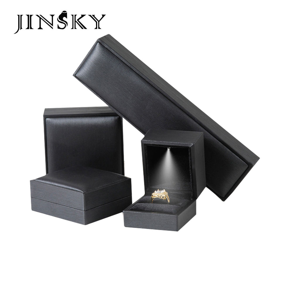 Wholesale black pu leather jewelry box with led light ring box pendant box luxury jewelry package