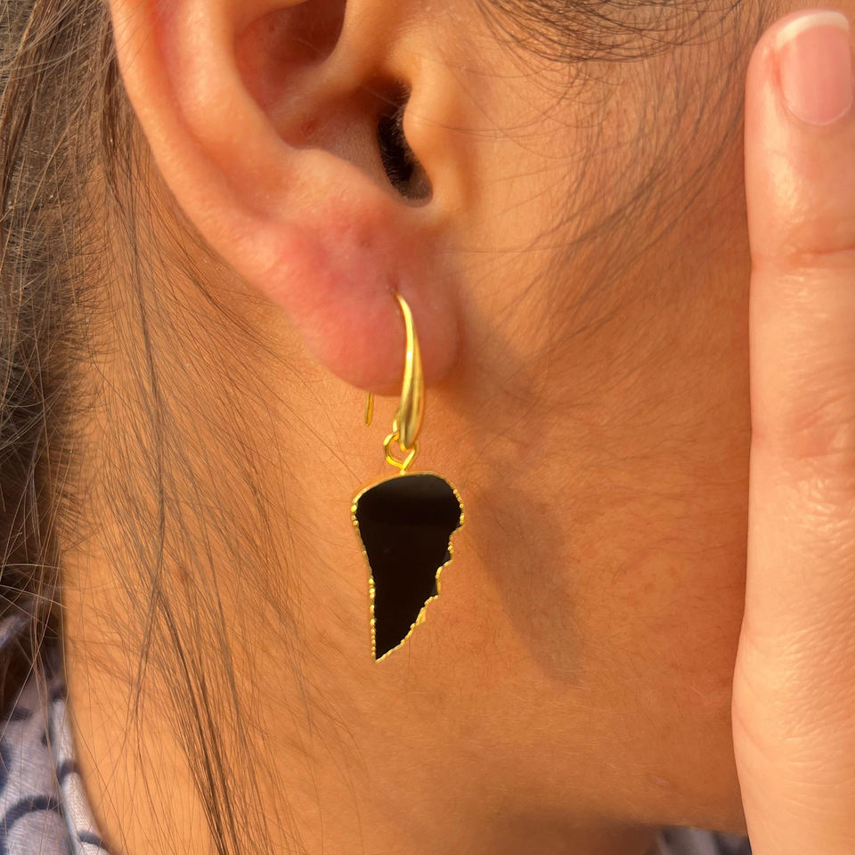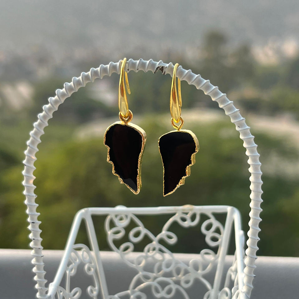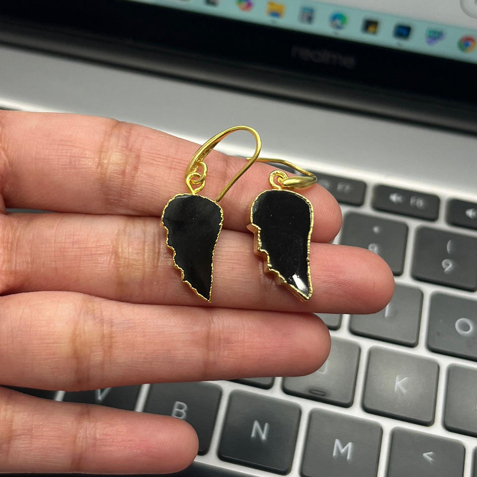 Wholesale brass jewelry black onyx gemstone angel wings earring 18k gold electroplated women's fashion hypoallergenic earrings