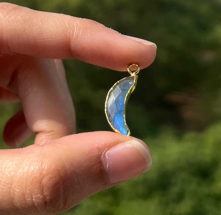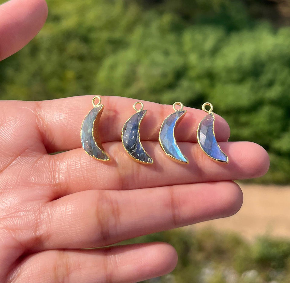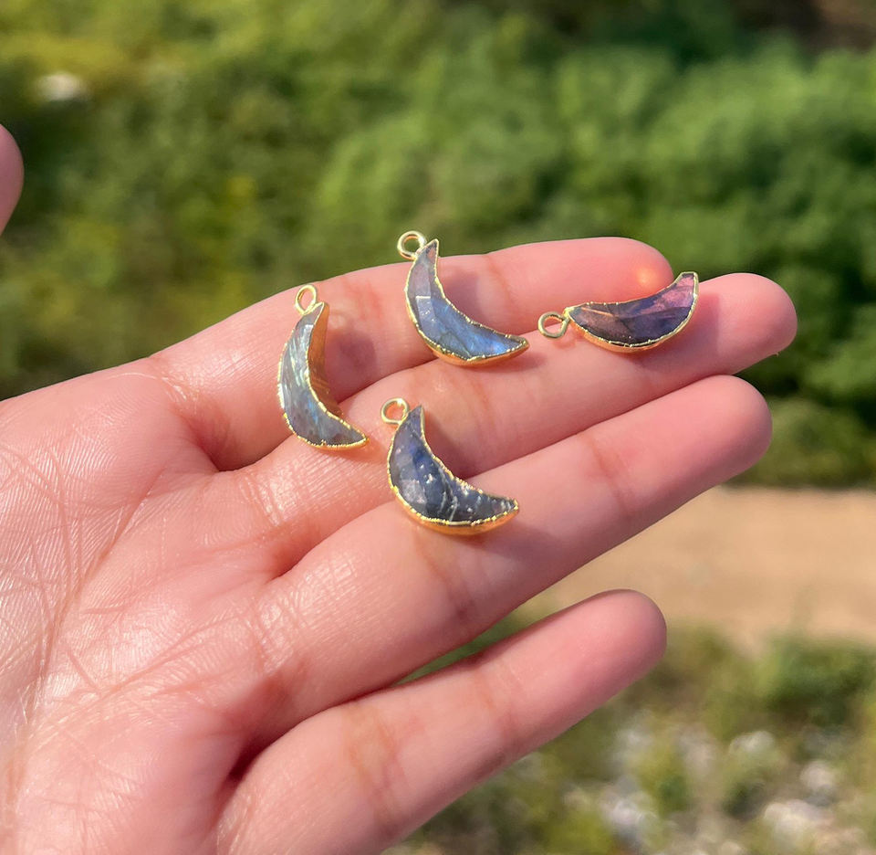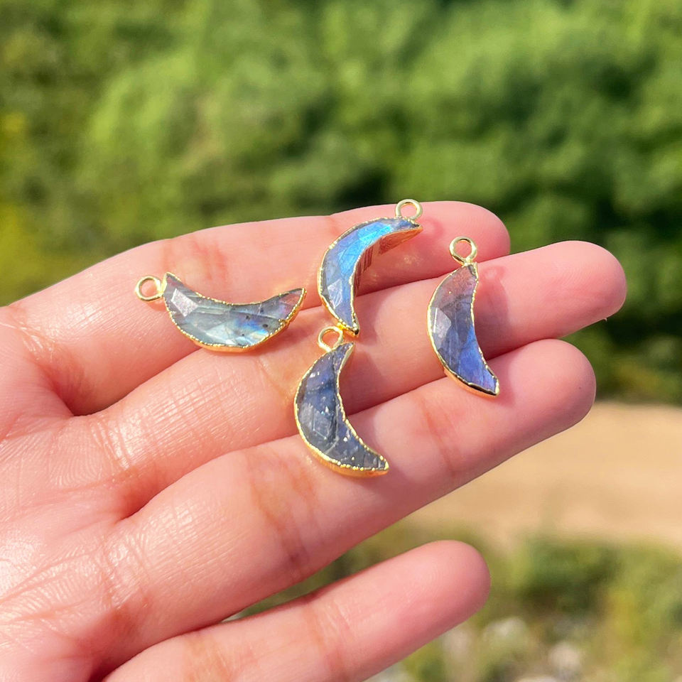 Wholesale charms connector jewelry natural flashy labradorite crescent moon connector gold plated single loop diy making jewelry