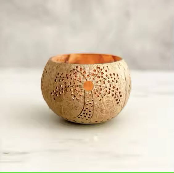 Wholesale cheap price natural coconut bowl tea light lantern coconut shell for Mid-Autumn festival made in Vietnam