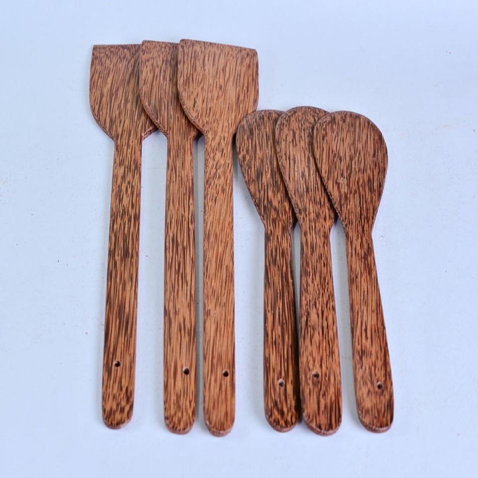 Wholesale cheapest set of kitchen utensils coconut wooden kitchenware cooking tools stirring spatula sets