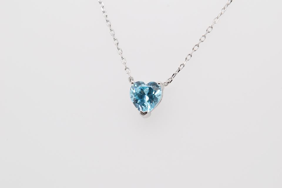 Wholesale Luxury 925 Silver Necklace Classic Heart Shape with Aquamarine CZ Rhodium/Gold Plated Zircon Heart Shape Necklace