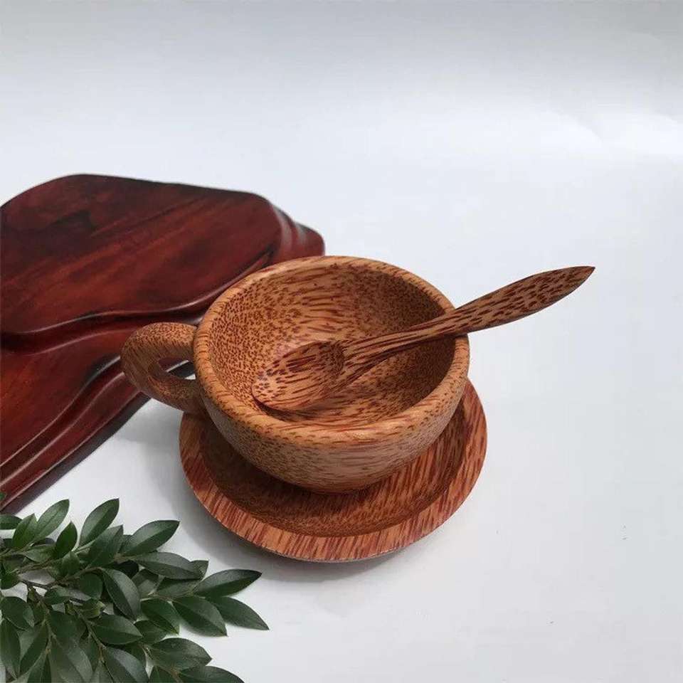 Wholesale coco palm wood cup set best selling coconut wooden tea cups and saucers from Vietnam factory