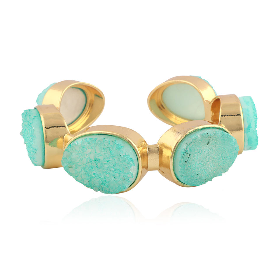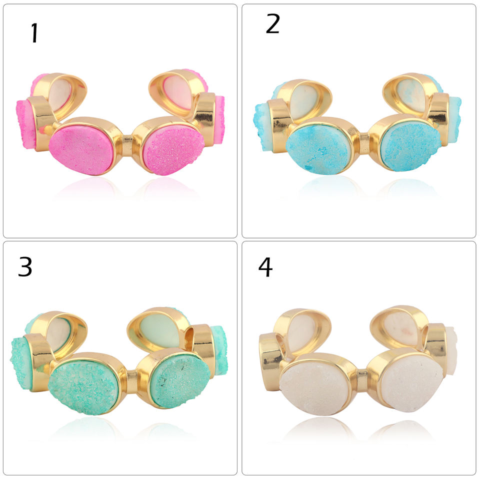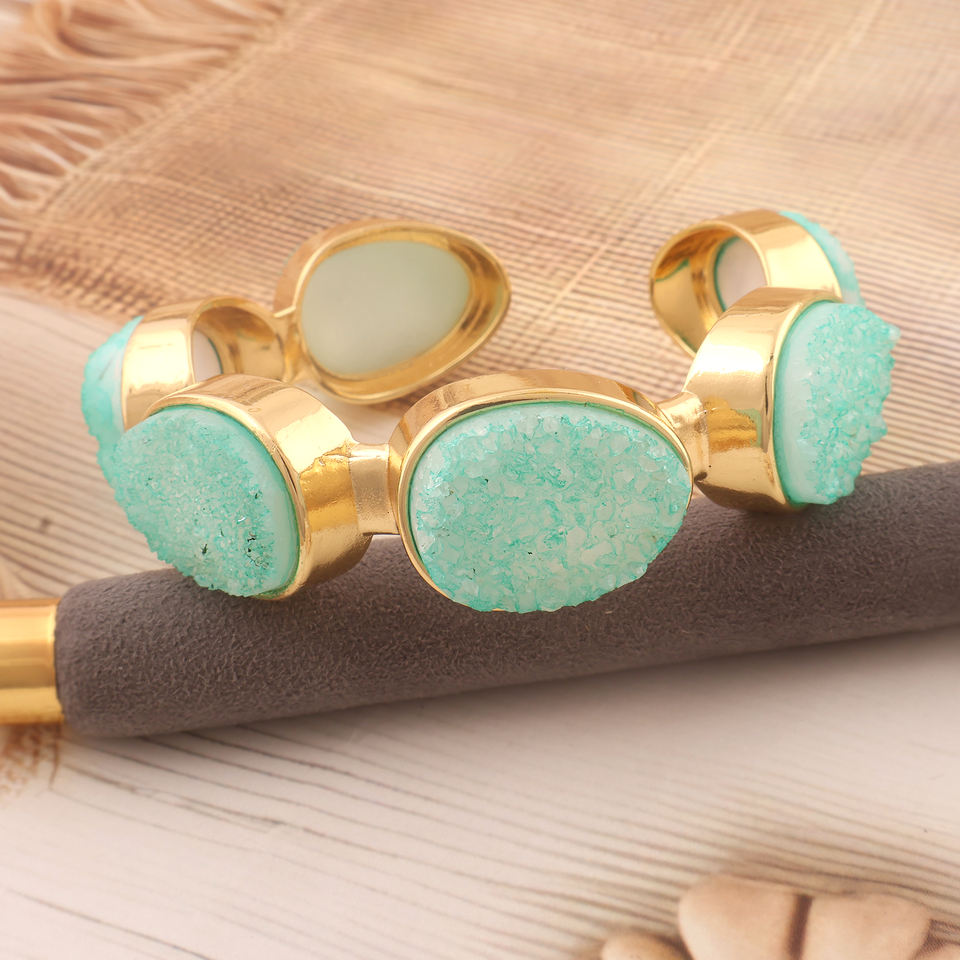 Wholesale collection natural aqua sugar druzy agate bracelet adjustable gold plating handmade cuff bracelet for women