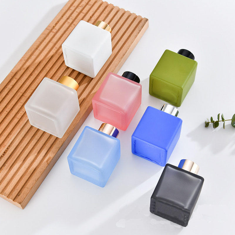 Custom Color 100ml Frosted Glass Reed Diffuser Bottles Square with Rattan Sticks Screen Printing for Home Decor