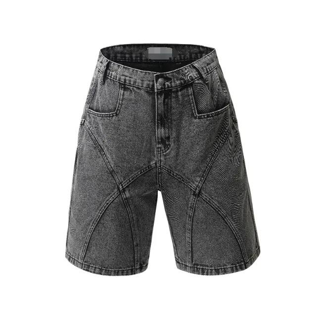 Custom Vintage Acid Wash Summer Denim Shorts for Men Wholesale Plus Size Streetwear Knee Length Plain Design