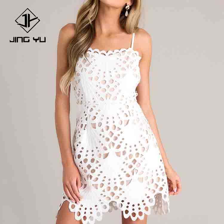 Wholesale exquisitely designed and charming white lace camisole mini dress custom 100% Polyester embroidery dress