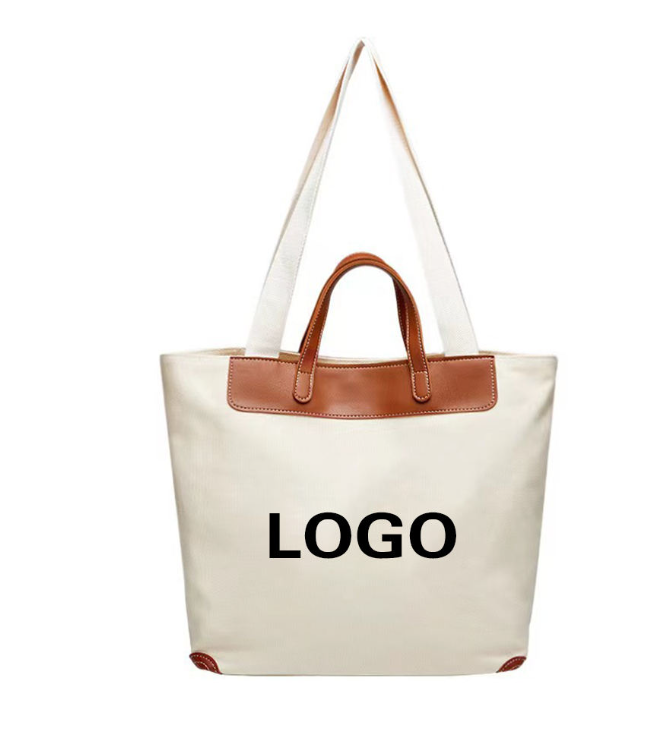 Wholesale fashion custom canvas bag, large capacity tote bag, blank canvas shopping bag with zipper, durable crossbody bag