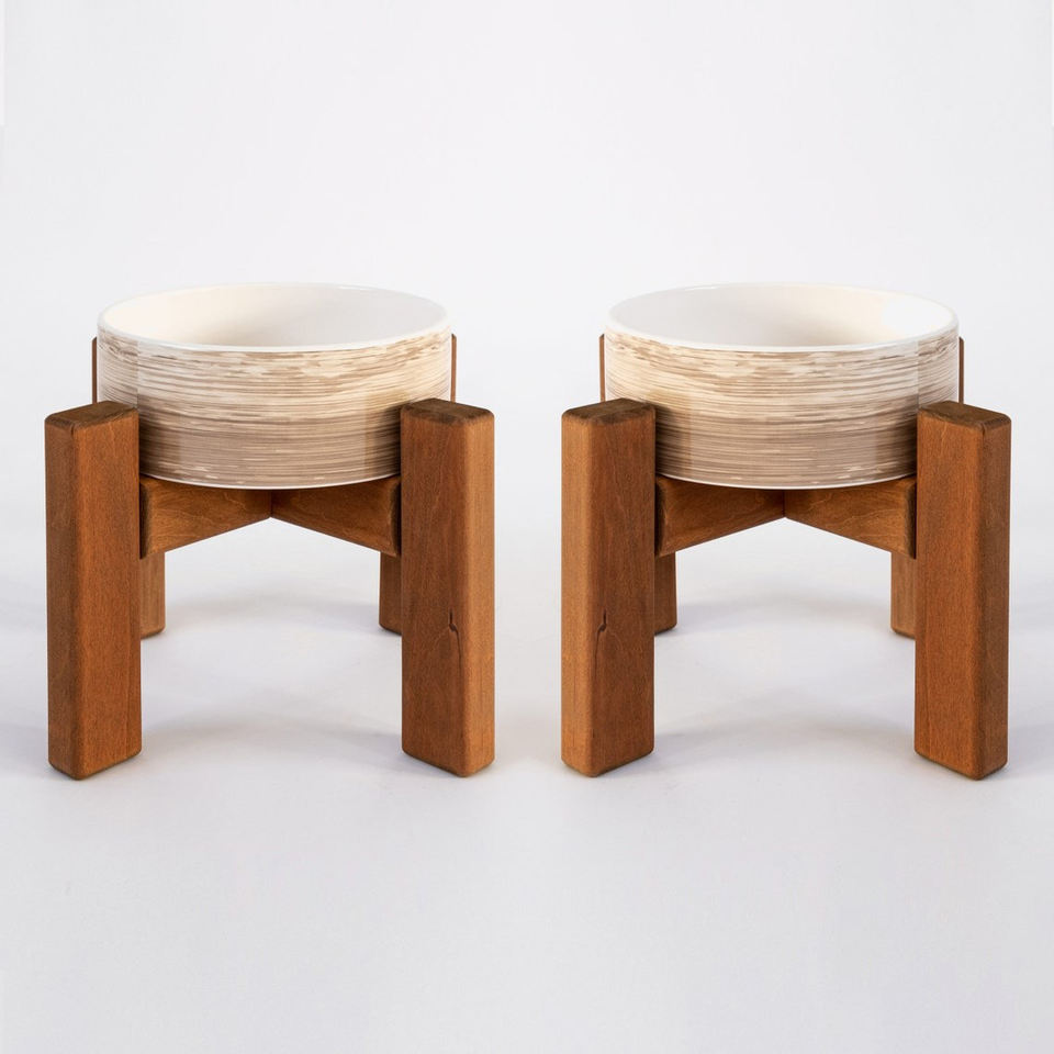 Wholesale handcrafted food feeder wood holder for pet bowls adjustable height wooden dog and cat bowl stand