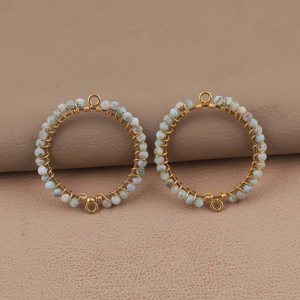 Wholesale Handmade Earring Larimar Gemstone Gold Plated Double Bail Round Shape Wire Wrapped Earring Connector Jewelry - 1024