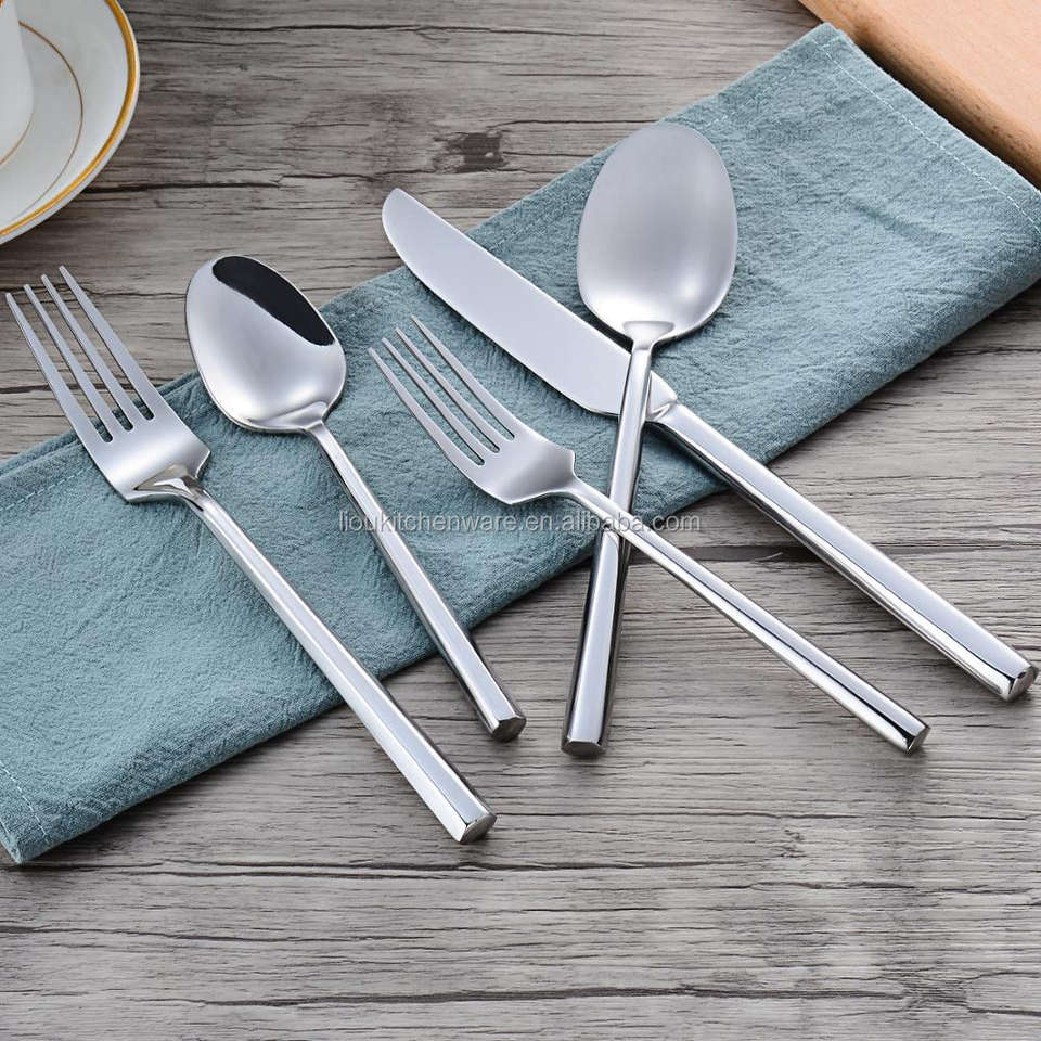 Wholesale heavy silverware 5 pieces silver stainless steel flatware restaurant cutlery set for wedding
