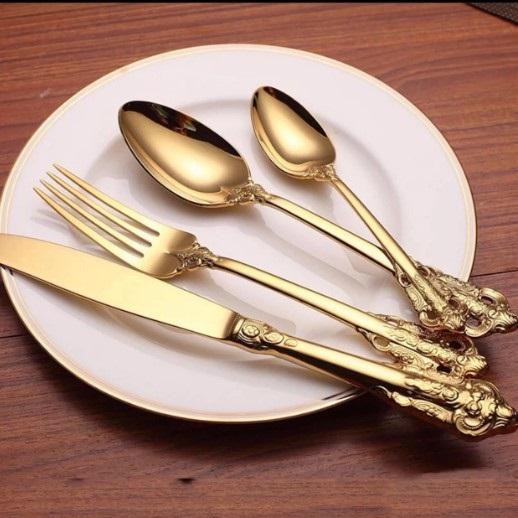 Wholesale hot sale stainless steel gold cutlery wedding spoon and fork cutlery set restaurant supplies modern flatware set