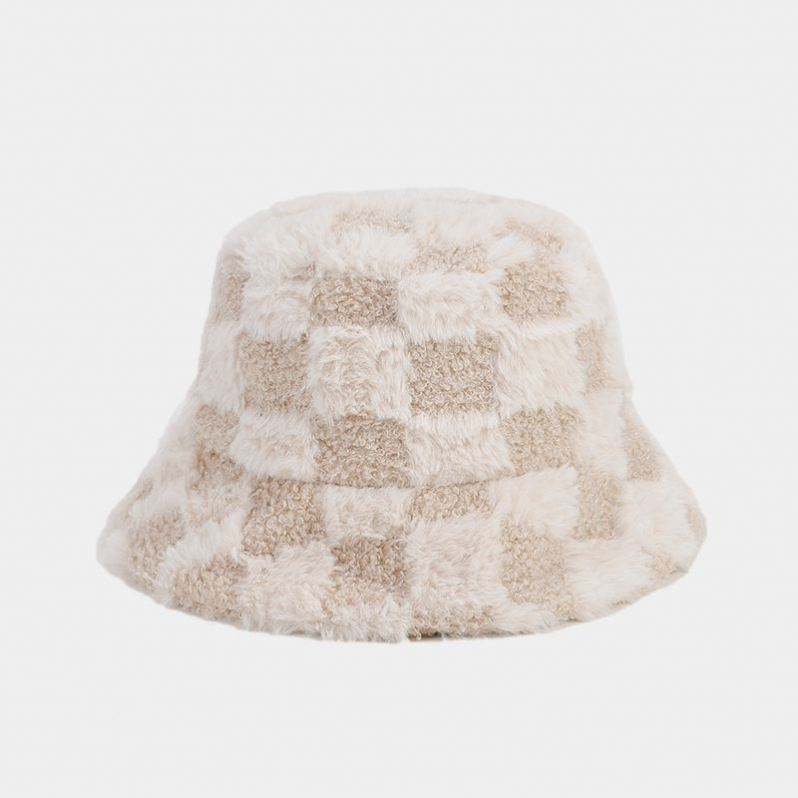 Wholesale in Stock Checkerboard Fisherman's Four Seasons Fleece Hats Women Plush Bucket Hat Cycling Party