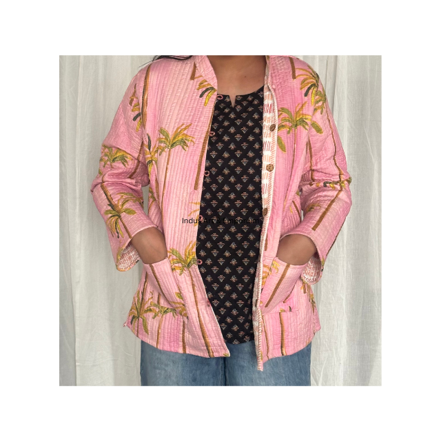 Wholesale Indian Handmade Quilted Cotton Jacket Jaipuri Vintage Cotton Kantha Sleeveless Jacket Reversible Palm Cotton Jacket