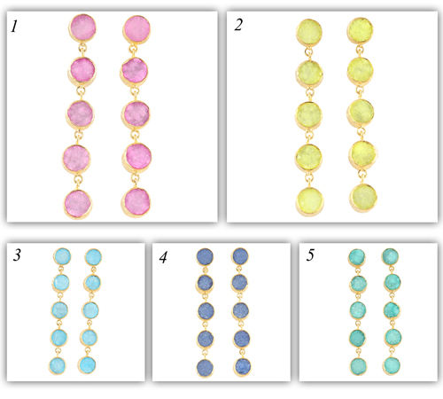 Wholesale jewelry resin sugar druzy long pair dangle earring brass gold plated texture finish collet setting statement jewelry