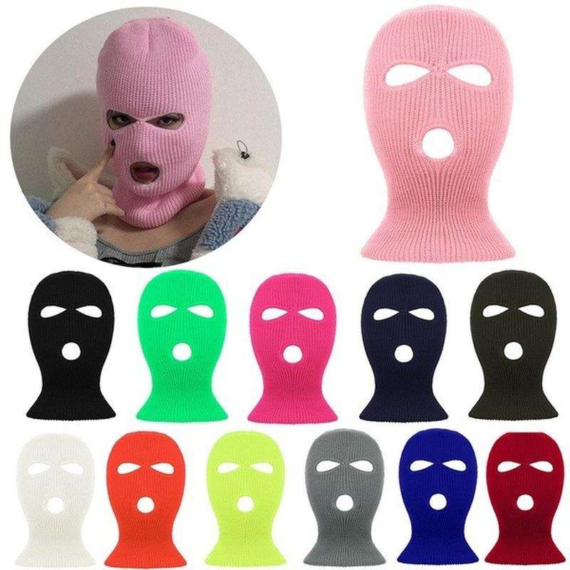 Knitted 3-hole Embroidered Ski Mask Winter Riding Cap Balaclava