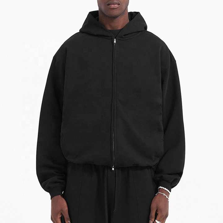 Wholesale oem high quality zip up hoodie oversized blank black hoodies fleece heavyweight men's boxy custom zip up hoodie