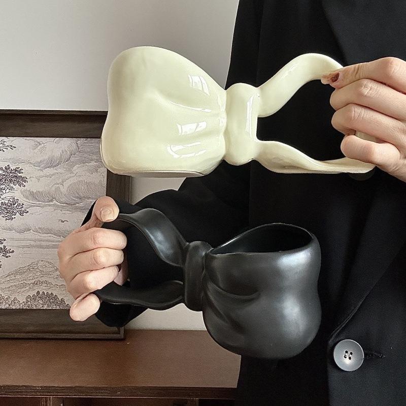 Wholesale of Drinking Cups Bow Design Ceramic Coffee Cups with Long Handle