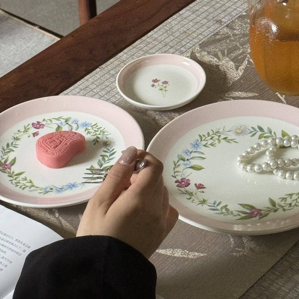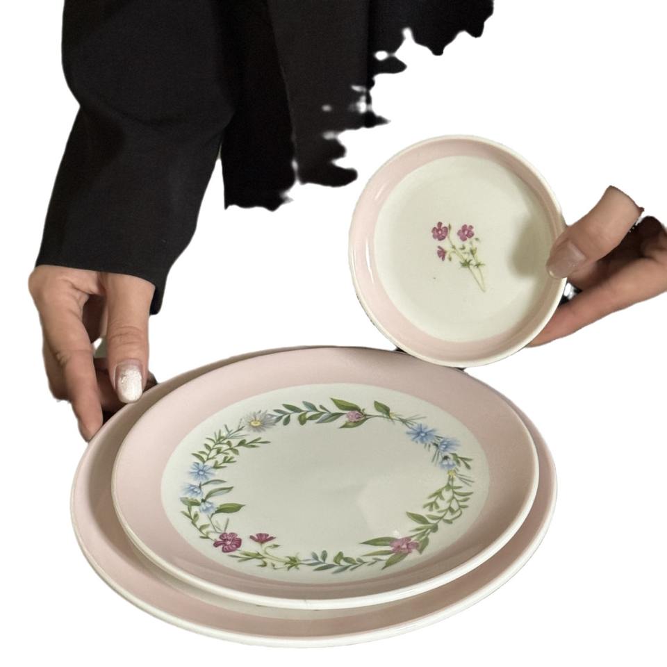 Wholesale of French retro gentle pink-edged floral plates, high-quality ceramic Western plates and dessert plates