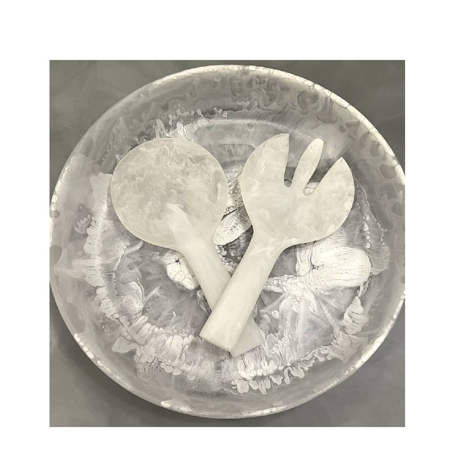 Wholesale resin Salad Spoon and Fork Set Kitchen Color Tableware ware and bowl gray color hot sale