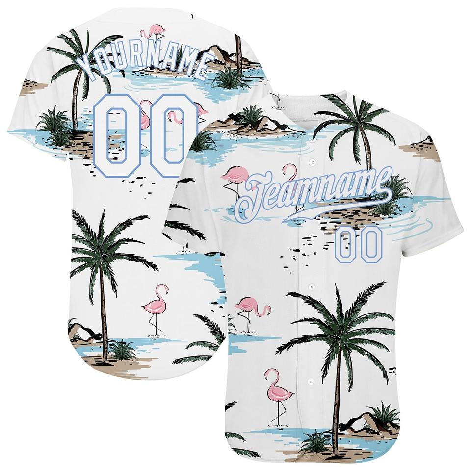 Wholesale sportswear apparel industry Custom White White-Light Blue 3D Design Hawaii Palm Trees Authentic Baseball Jersey