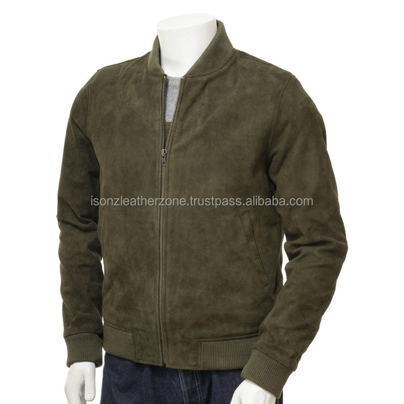 Wholesale Wind Breaker Male Jacket 100% Suede Leather Custom Man Bomber Jacket