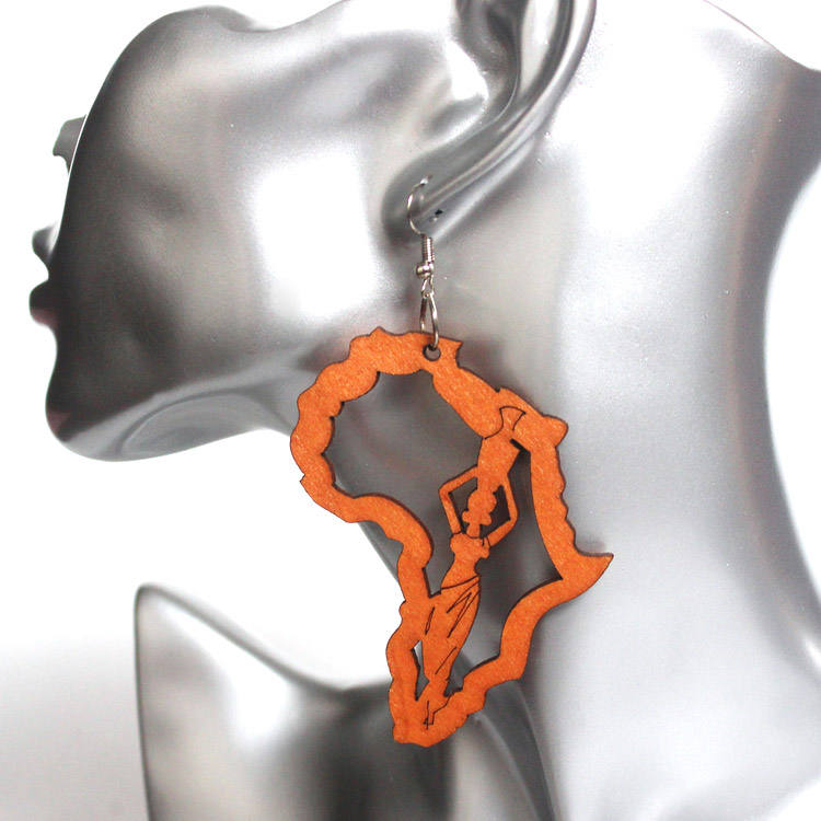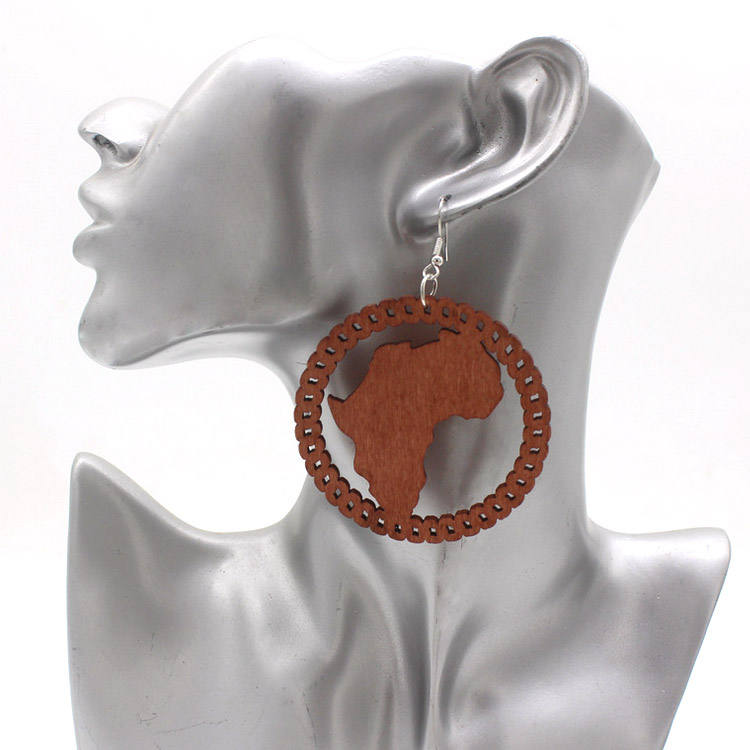 Wholesale Women Classic Brass Geometric African Map Hoop Earrings for Party & Gift