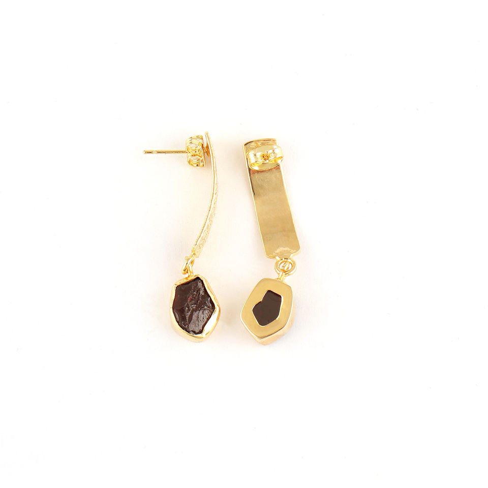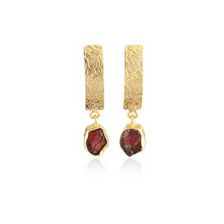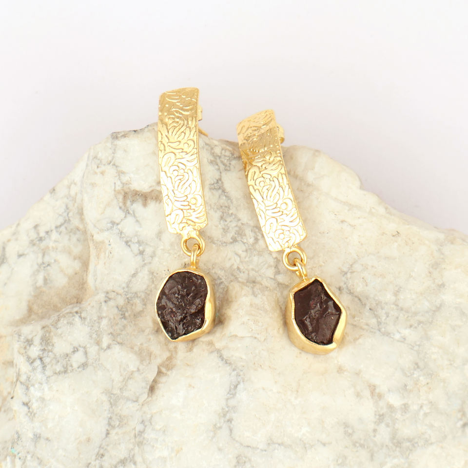 Wholesale women's earring natural raw garnet statement earring 18k gold plated designer texture brass metal ear post dangle drop