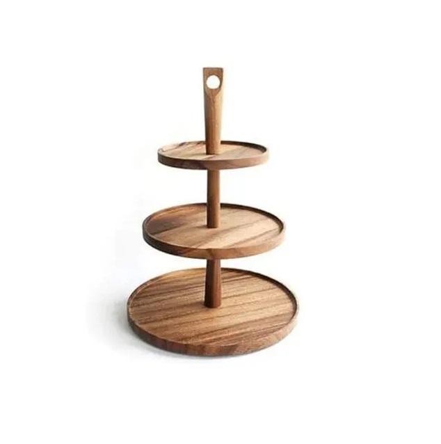 Wholesale wood cake stand 3 tier Wedding Party Buffet Hotel Style solid Wood Cake Decoration Cake Wooden best design