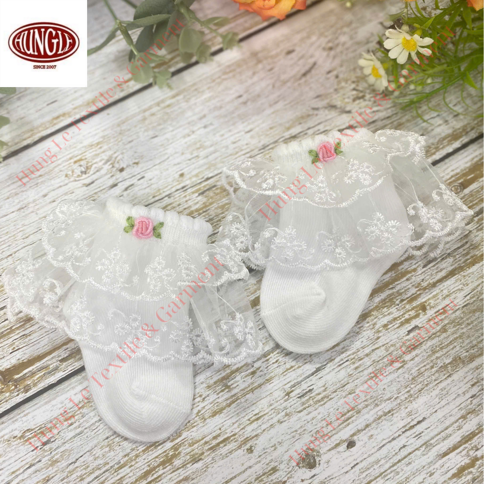 Wholesaler Adorable Hand-Knitted Baby Socks with Hand Floral Embroidery