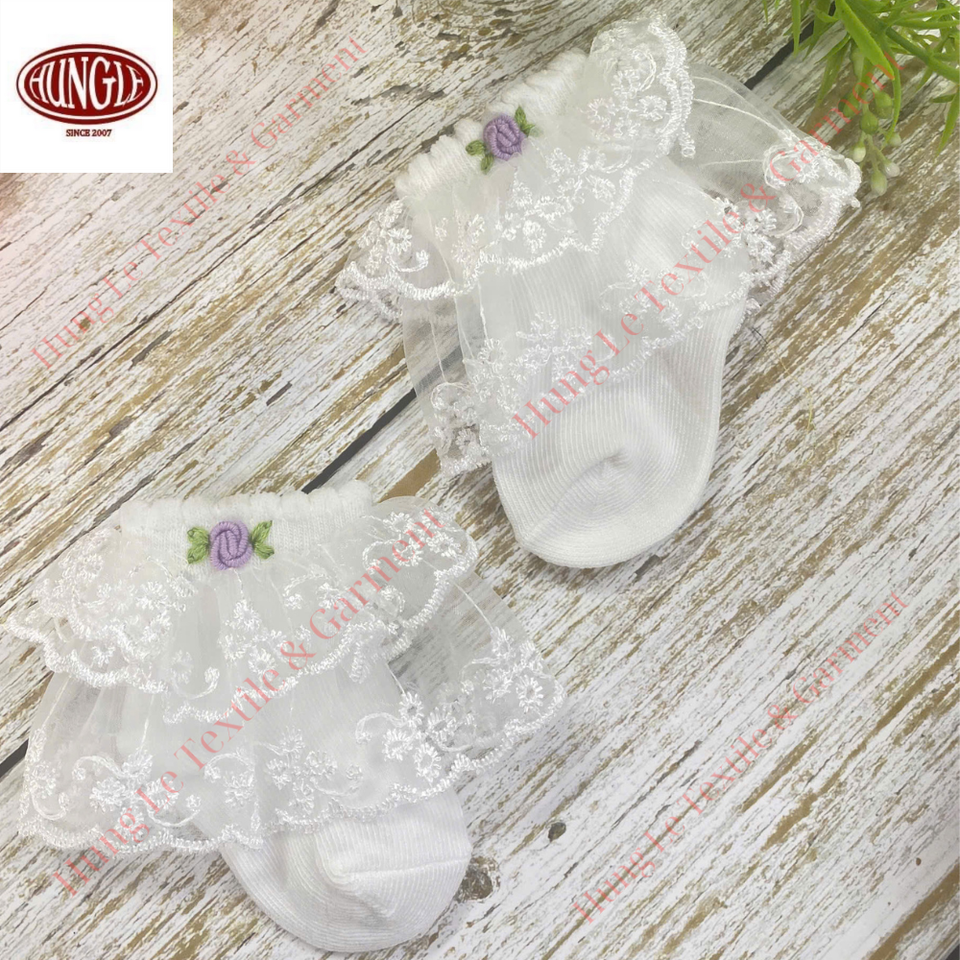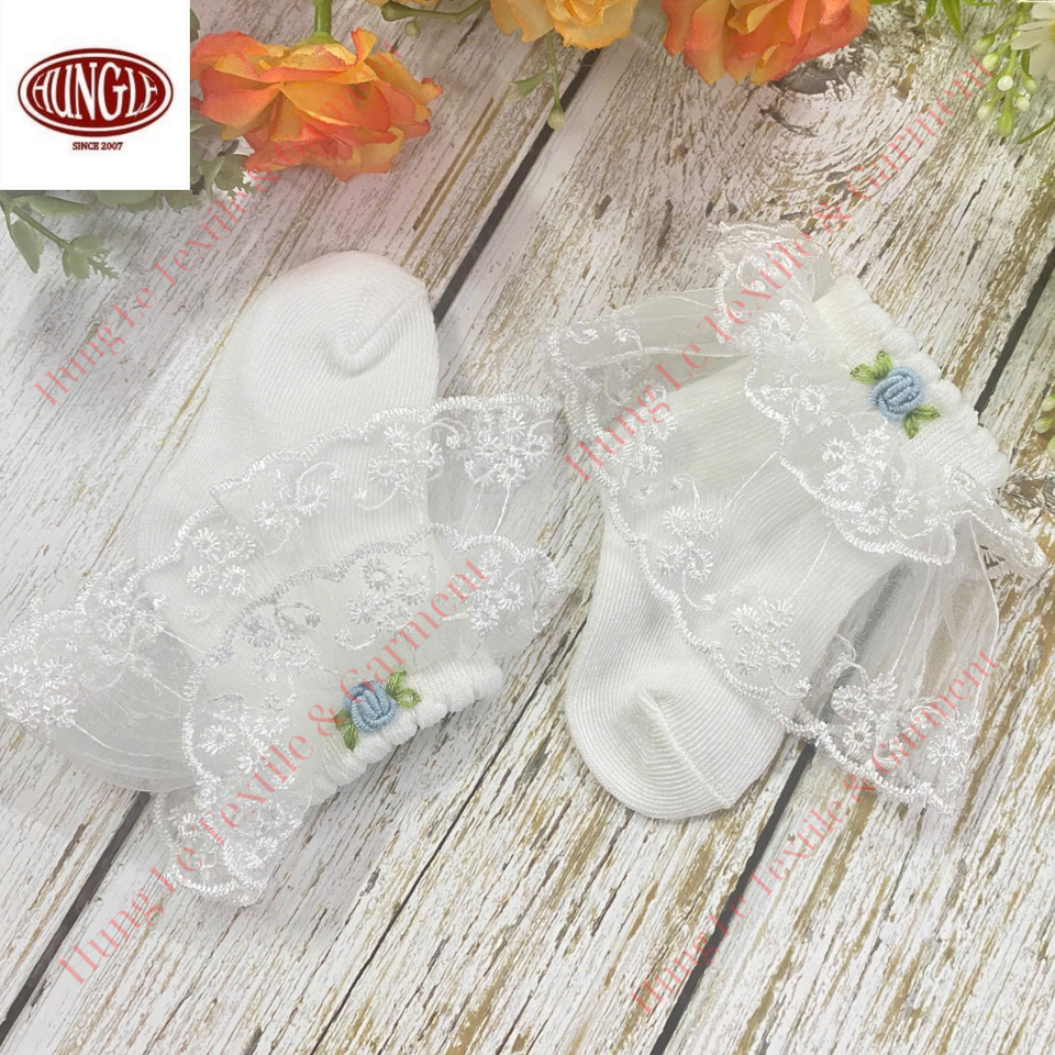 Wholesaler Adorable Hand-Knitted Baby Socks with Hand Floral Embroidery
