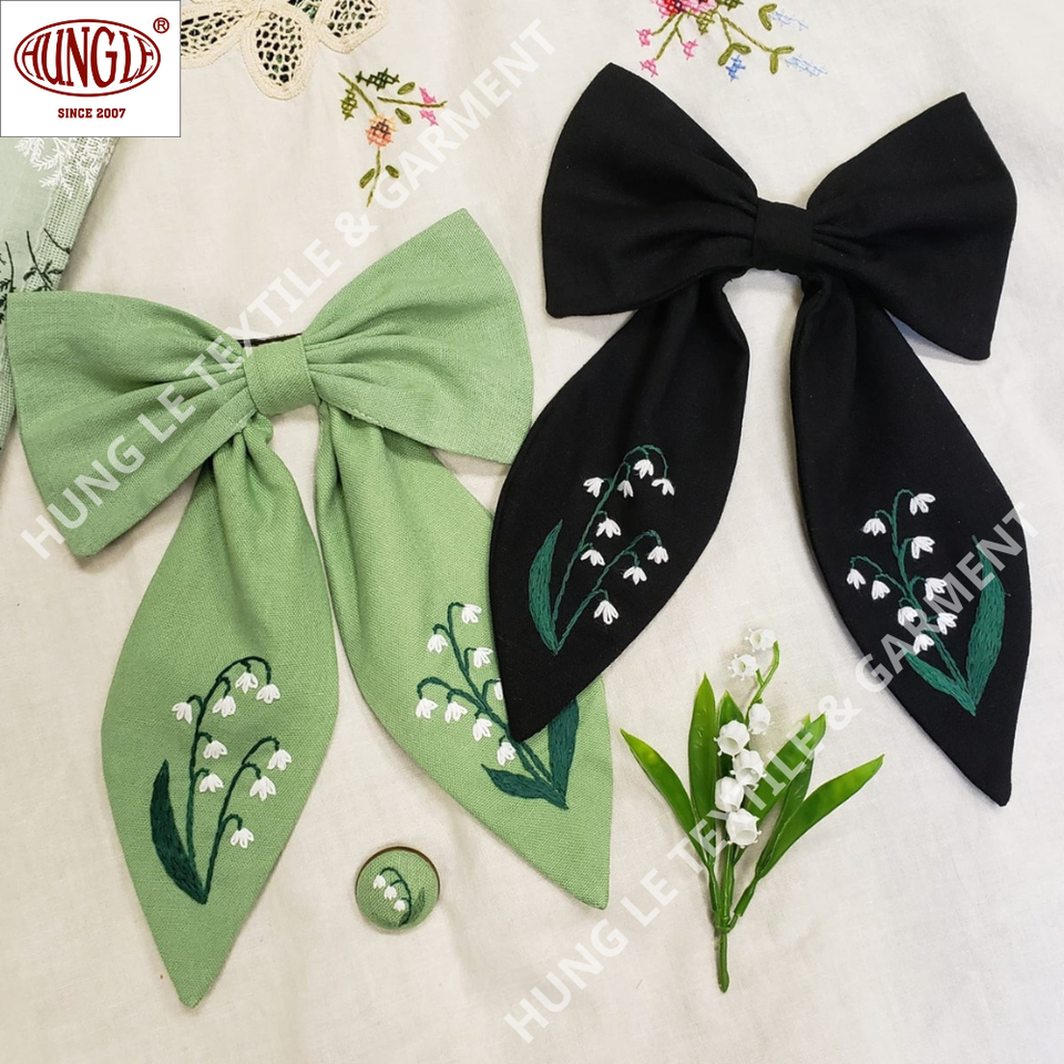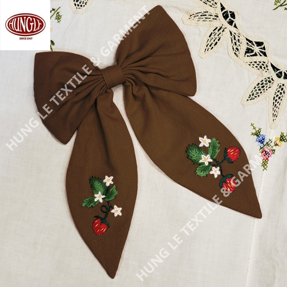 Wholesaler Cotton Elegant Bow Hairpins Hand Embroidery Style for Girl Making