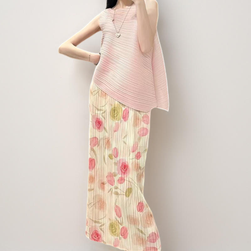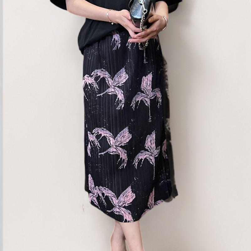 Wholesaler Breathable Eco-Friendly Summer Natural Casual Women's Pleated Midi Skirt Geometric Pattern for Bulk Purchase
