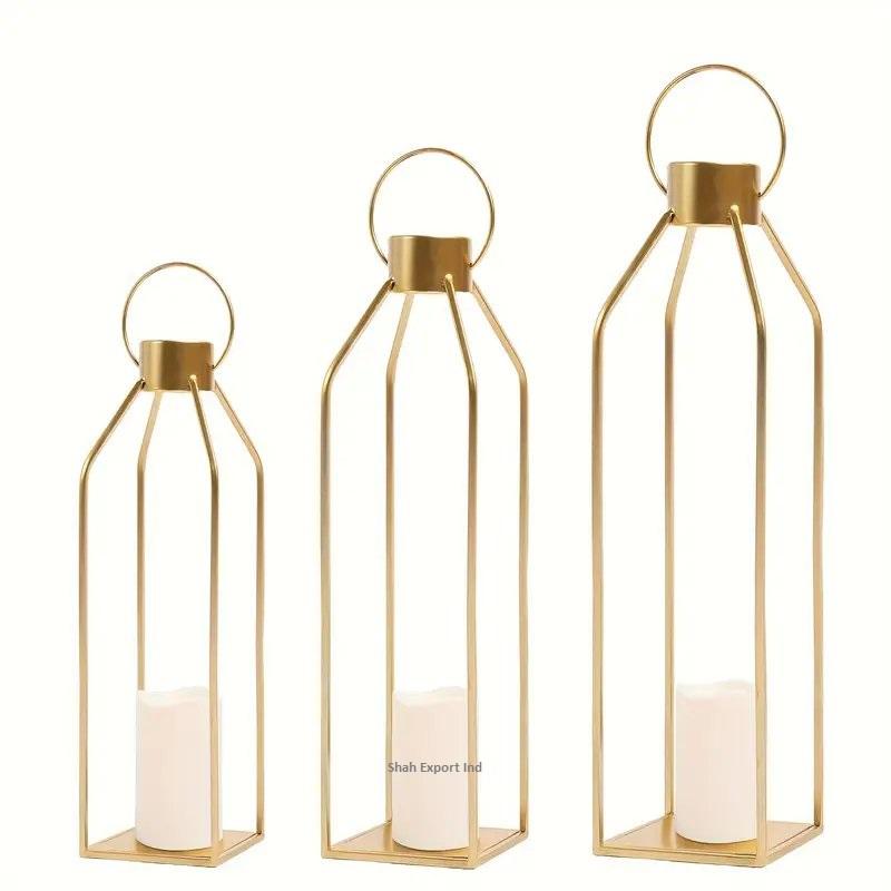 Wholesaler Golden Iron Metal Wire Hanging Candle Lantern Exclusively Design for Weddings Home Decor Lantern Set Of 3