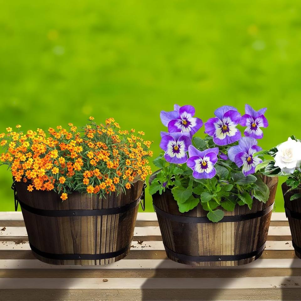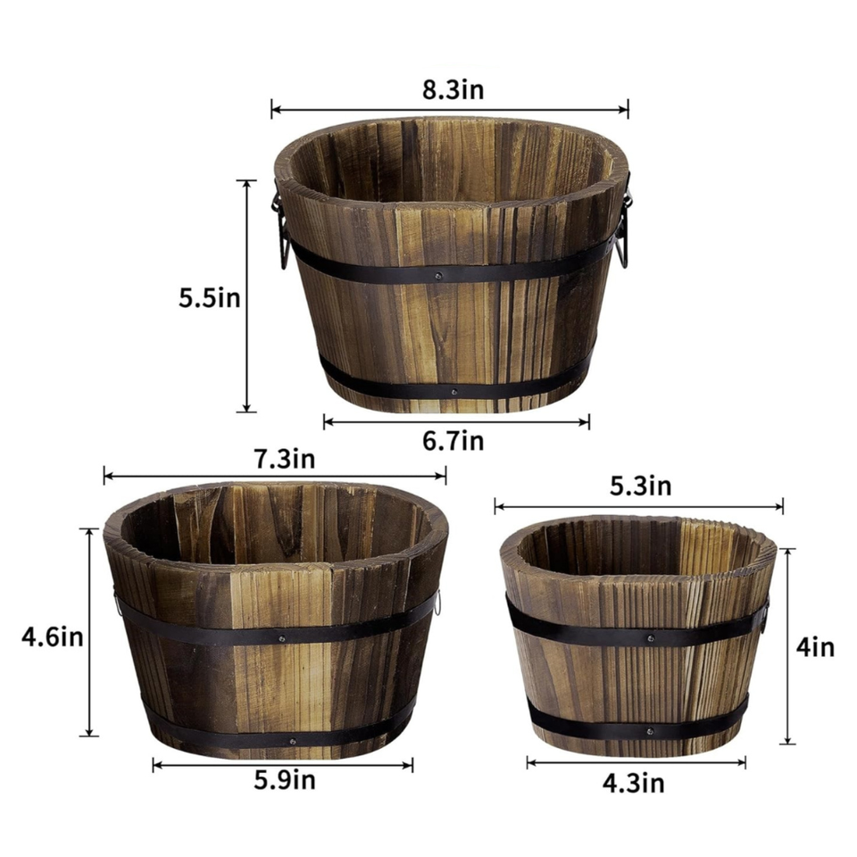 Wholesaler High Quality Rustic Wooden Barrel Planter Set of three Oval Garden Flower Pots for Indoor and Outdoor Plants