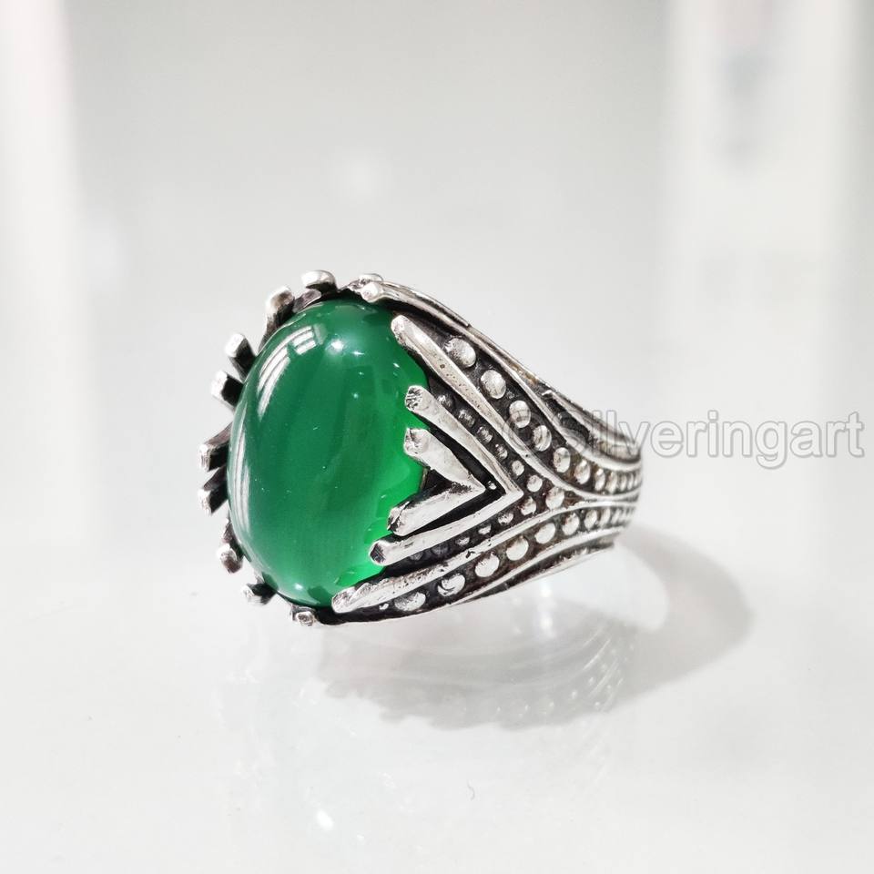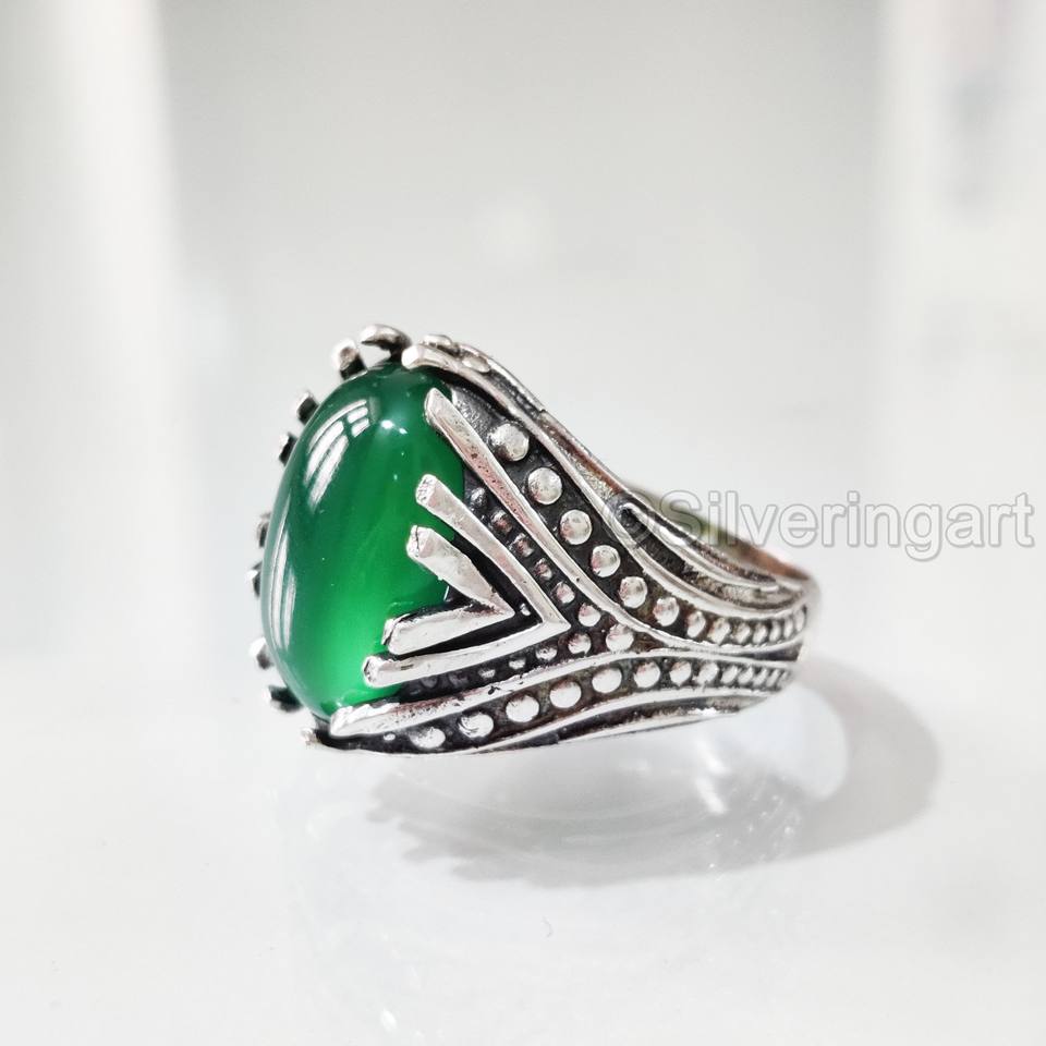 Wholesaler Men's Ring Natural Green Onyx Gemstone December Birthstone Ottoman Birthday Gift Jewelry 925 Sterling Silver Ring